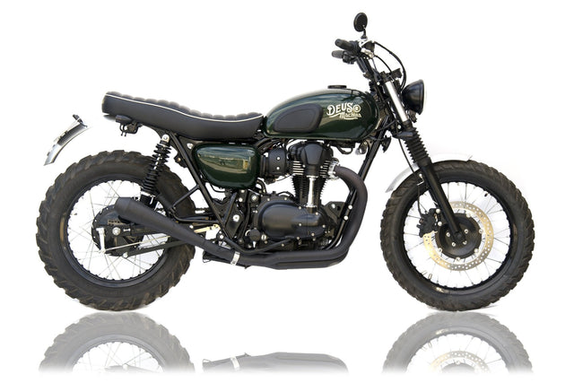 The dark pearl green with cream coloured Deus logos is the careful work of Christophe Boutin of Boutin's Design and the surf/snowboards rack a signature addition from Jeremy. Add a Power Commander from Dynojet, and a dyno tune from VN Racing and the Orsini W800 Viper is more than ready to slither on road or track.